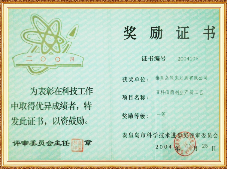 豆科瘤菌劑生產(chǎn)新工藝—秦皇島科學(xué)技術(shù)進(jìn)步一等獎(jiǎng)