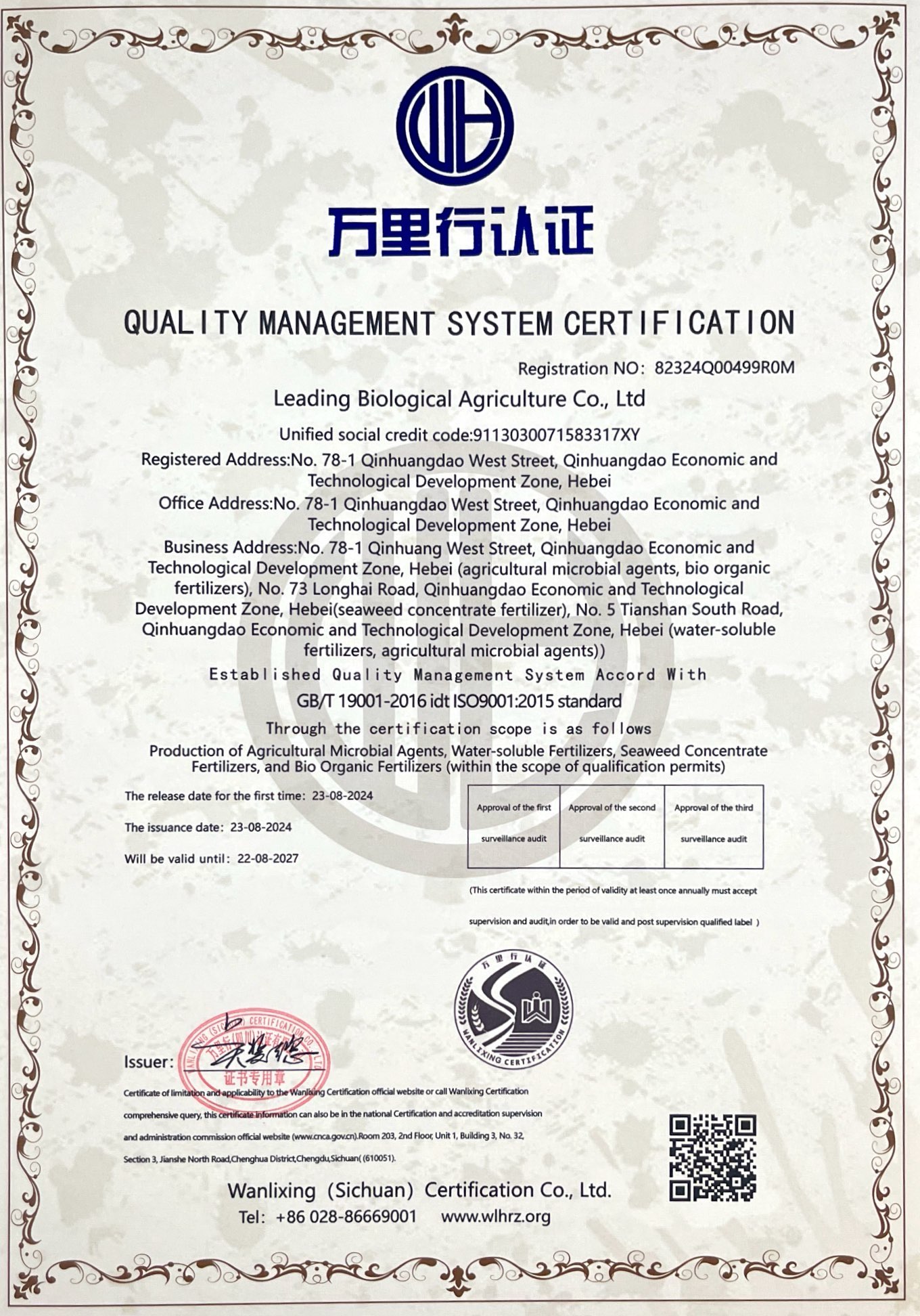 質量管理體系認證證書